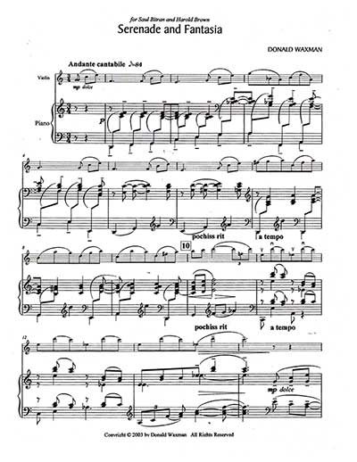 Mr. Waxman has written for almost every genre, including compositions for piano and piano ensemble (many of which were premiered by the composer and his pianist wife, Jho Waxman), chamber ensemble, voice, chorus, symphonic and chamber orchestra. Orchestral performances of his works have included the Houston Symphony, the St. Louis Symphony, the Honolulu Symphony, the Seattle Symphony, National Gallery Orchestra, the Kansas City Symphony and the Oakland Symphony, among others. Chamber music and choral premieres have included the New York Composers Forum, Bennington Composers Forum, Huntingdon Trio, Baltimore Chamber Music Society, Florida Philharmonic Chamber Players and the Gregg Smith Singers, among others. Three of the largest MTNA (Music Teachers National Association) state organizations have honored Mr. Waxman in naming him their “Composer of the Year” and commissioning works that were premiered at their state conferences: Trio for Flutes and Piano at the 1985 New York state conference, Arabesques and Ostinato at the 1993 California state conference and Variations on a Waltz of Diabelli for violin, clarinet, cello and piano at the 1997 Florida state conference.